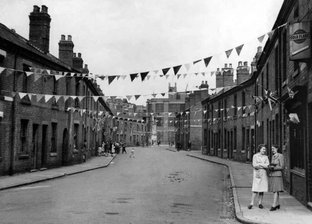 Today's 'treasure' from ©Elizabeth Tyler's brilliant collection. I'm pretty sure it's Croft Road looking east towards the Cornercroft Works on Queen Victoria Road - with the junction at Starley Road on the right - We have had this similar view before but earlier - possibly celebrating VE day?