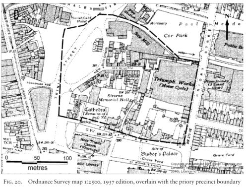 This is from a book on Google Books, Helen, called Coventry Medieval Art, Architecture and Archaeology in the City and its Vicinity (one I would like to get hold of), which shows the location of the Hall.