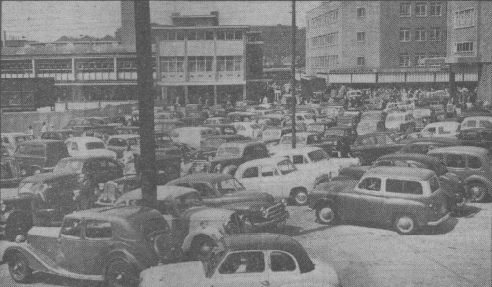 Bull Yard car park, Coventry city centre. 16 May 1959. but I think it's looking further North than where Bull Yard originally was over the Barracks and the spot where the later multi-storey (appropriately enough!) was -