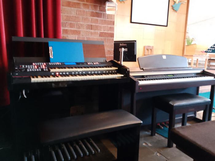 Both can be played from the organ, the piano coupled.