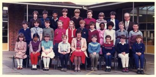 This photo with son in it (2nd from right on front row) was taken about 1980 in his 4th year at primary school (he was born 1971) at RAVENSDALE SCHOOL, WYKEN, Coventry. Mr. French as headmaster. That's all I know of names, I'm afraid!