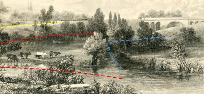 The dark blue line is the river as per my oldest map.