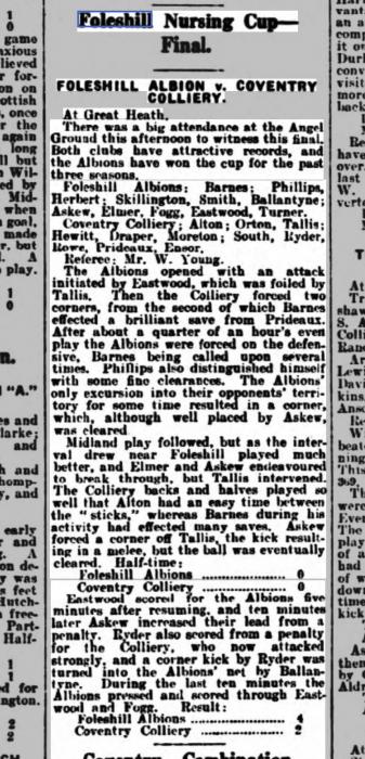 I seem to recall that there was a football competition in Coventry called the Foleshill Nursing Cup. Could it be that?