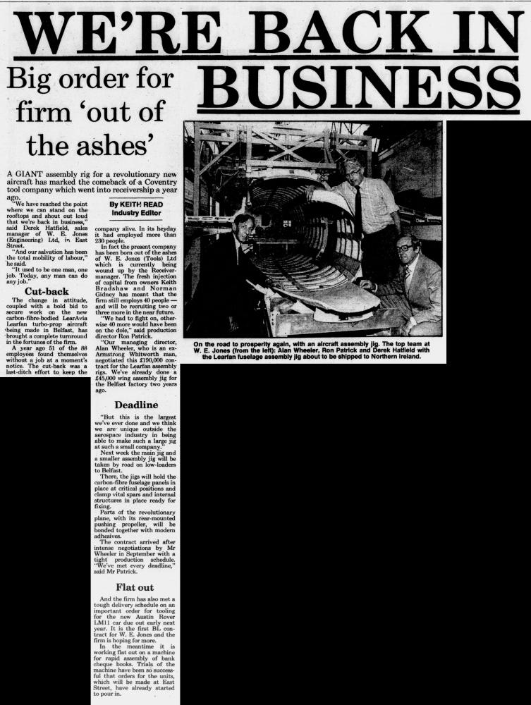 Served my Toolmaker Apprenticeship (later transferring to the Drawing Office) at W E Jones. The company specialized in Jigs and Fixtures, Press Tools and the design and manufacture of one-off machine tools for companies such as Ford and Raleigh Bicycles. The company also worked on the Concorde project. The heat treatment arm was only a small sub-contract/in-house operation - Jack was a real character. At the start of my employment the Managing Director was Jack Perkins, succeeded by Alan Wheeler. Head of Production was Ron Patrick. Head of Inspection was Malcolm Jackson. Head of Planning/Estimating and all Apprentice training was Alan Needham.
